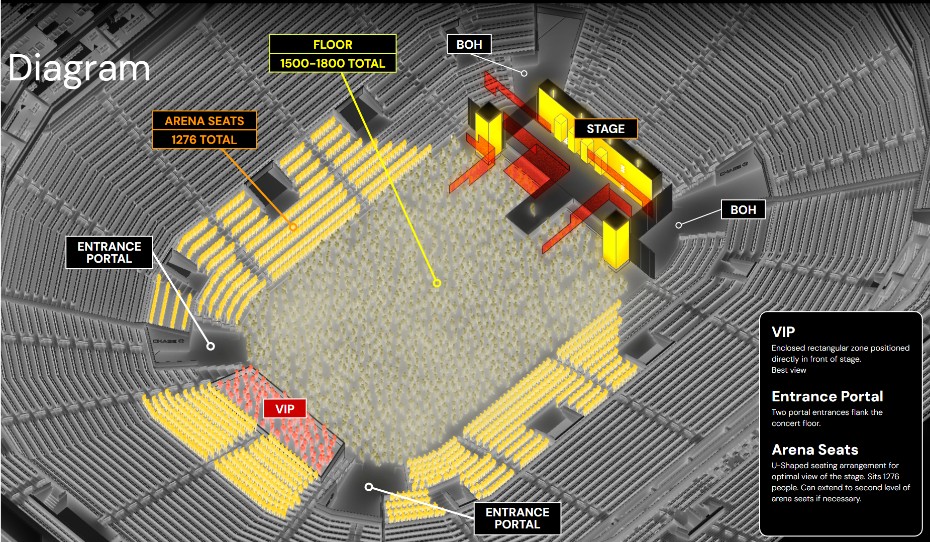 For EA Sports Madden Bowl 2026, our team proposed a high-energy performance environment that captured the excitement of live sports and music culture. I contributed to the stage and lighting design concepting, developing spatial layouts and VIP zones that balanced performance visibility with crowd engagement.